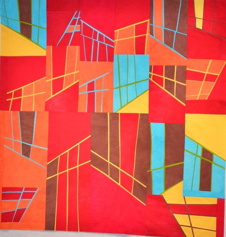 The next week’s assignment focused on color and value. I thought I would be in trouble with all my bold and bright colors so after conferring with Lisa decided to change up my original design ( save this for more subtle colors I dye this summer) and use the fabric I have on a new design. I chose the assignment of using a color combination which I hadn’t used before-red and green.