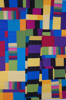 Here is a little piece I finished last week and it is Directions#1 made from a beautiful piece of African fabric and my hand-dyed fabric. I don’t want to show you just my unfinished pieces so here’s one that’s done. I am finding commercial fabric harder and harder to use. I purchased it at IQF in Chicago with my ultimate fabric shopping buddy Lynne.