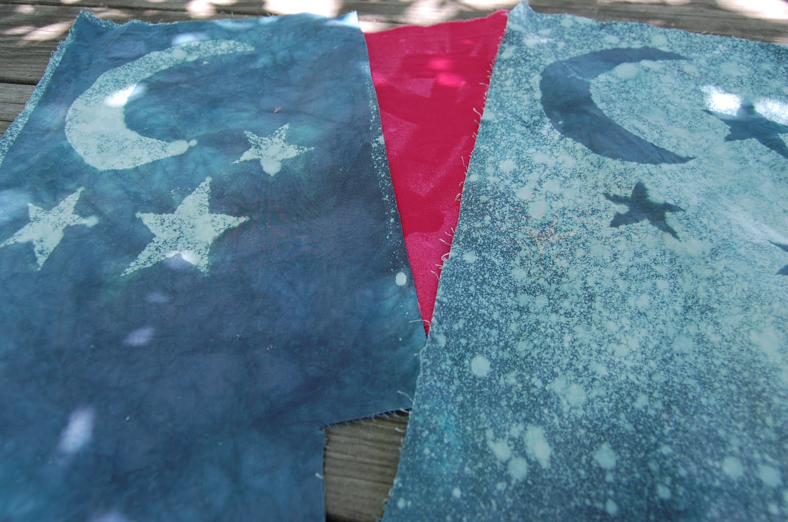 And finally, after a long month of learning, I went to sew. I first ironed some of my class samples from our day of discharge dyeing at the Velda Newman class. It was fairly easy techniques using bleach.