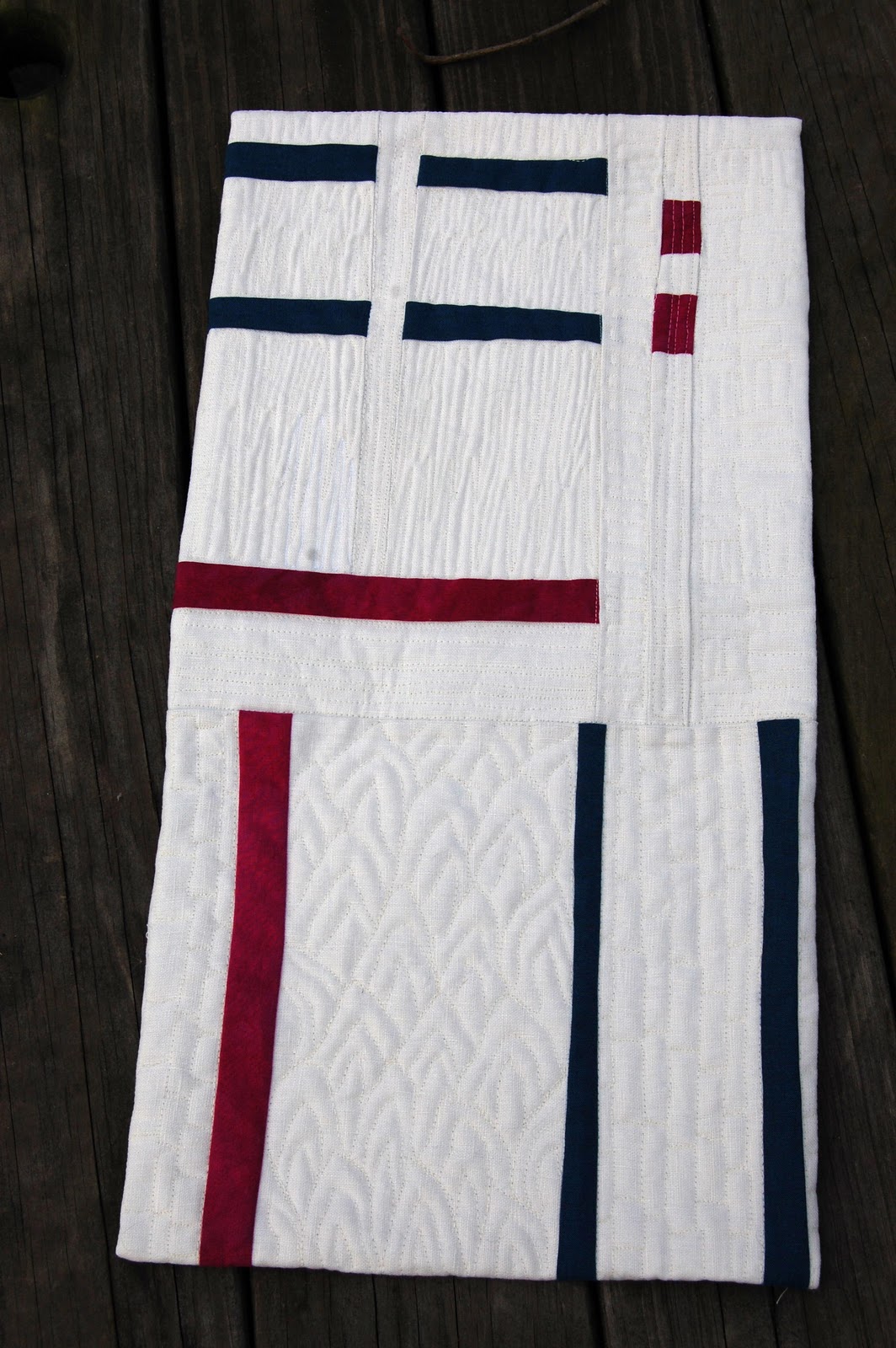 So leave a comment and let me know one creative thing that you did this past week. I’ll start. I finished a small stitch sampler on linen in which I practiced four of Leah Day‘s machine quilting fillers: etch n sketch, flame, bamboo and checkerboard. Small so I could actually accomplish something! A little imperfect work of the week.