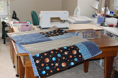 Am working hard on my little quilt for Project Hope. I used some flannels from my stash and foolishly tried fusible batting. I have never used it on a a large project before and will never do that again on a large piece. It was way too stiff with my little machine. So in an attempt to save time, it probably cost me an hour to start over with the batting. Looks like it will be nice and warm. It turned out to be 45 x 65.