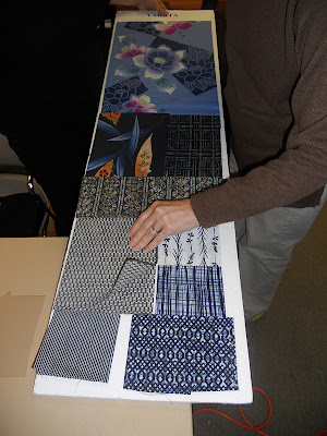 She brought in her fabric boards and I loved the shibori and the actual sashiko fabrics. I had thought sashiko was just the blue needlework stitch on white but there is actual sashiko fabric.