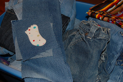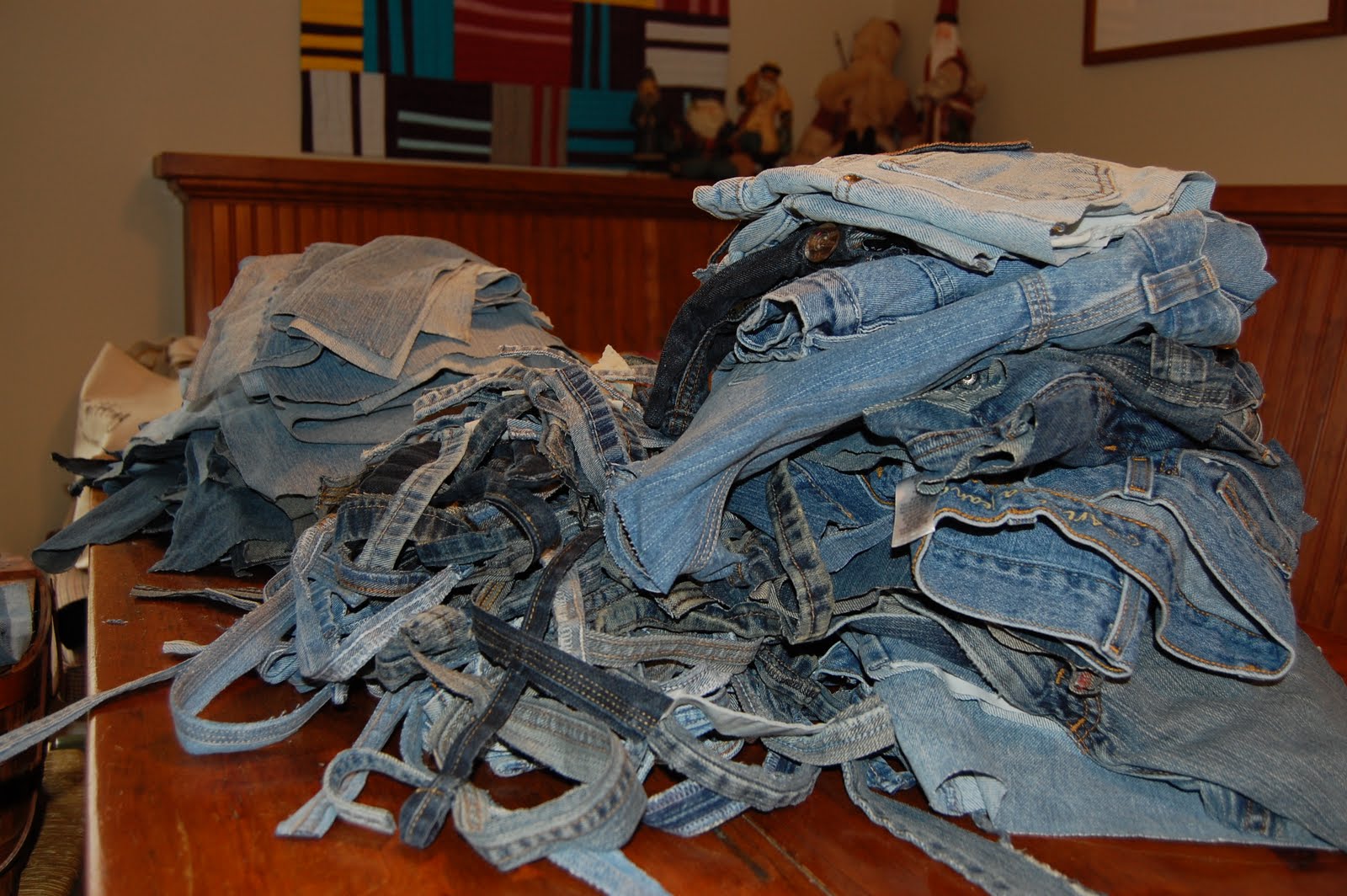 I am in charge(sounds like a lot of responsibility, doesn’t it?) of making an auction quilt for my son’s class at school. Now the auction isn’t until March but I need to start cutting the quilt out to see what I might yet need. So a friend and I will start the project today. I have collected about thirty pairs of old jeans from the kids. We’ll start cutting them apart today to see how much” fabric” we have. Then I will begin stitching them together in a really random way. Yeah-ok- I have no plan. One piece building off another. It will truly be an improvisational quilt as I have no idea-ok maybe a vague idea of what we will do. I don’t want to give too much away. I do want to include some of the moms after Christmas in this project- they have expressed interest in the process so you never know who you might inspire.